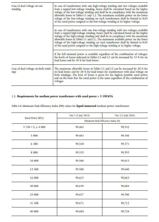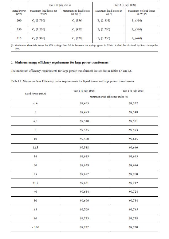 Table 1.7 shows how efficiency will change with Tier-2 for large power transformers. This table is prepared for oil-type power transformers.